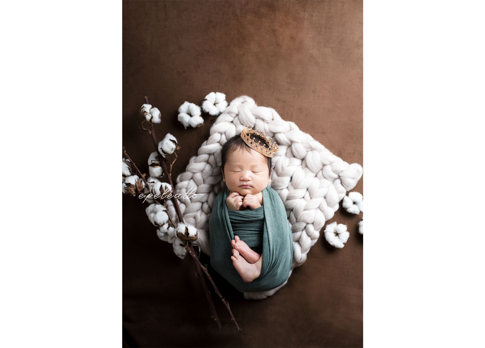 ニューボーンフォトのstandardプランに含まれているレタッチ&エディットに加え、出張撮影時には撮れない背景や、合成を前提としたポーズで、より神秘的なお写真を作るサービスです